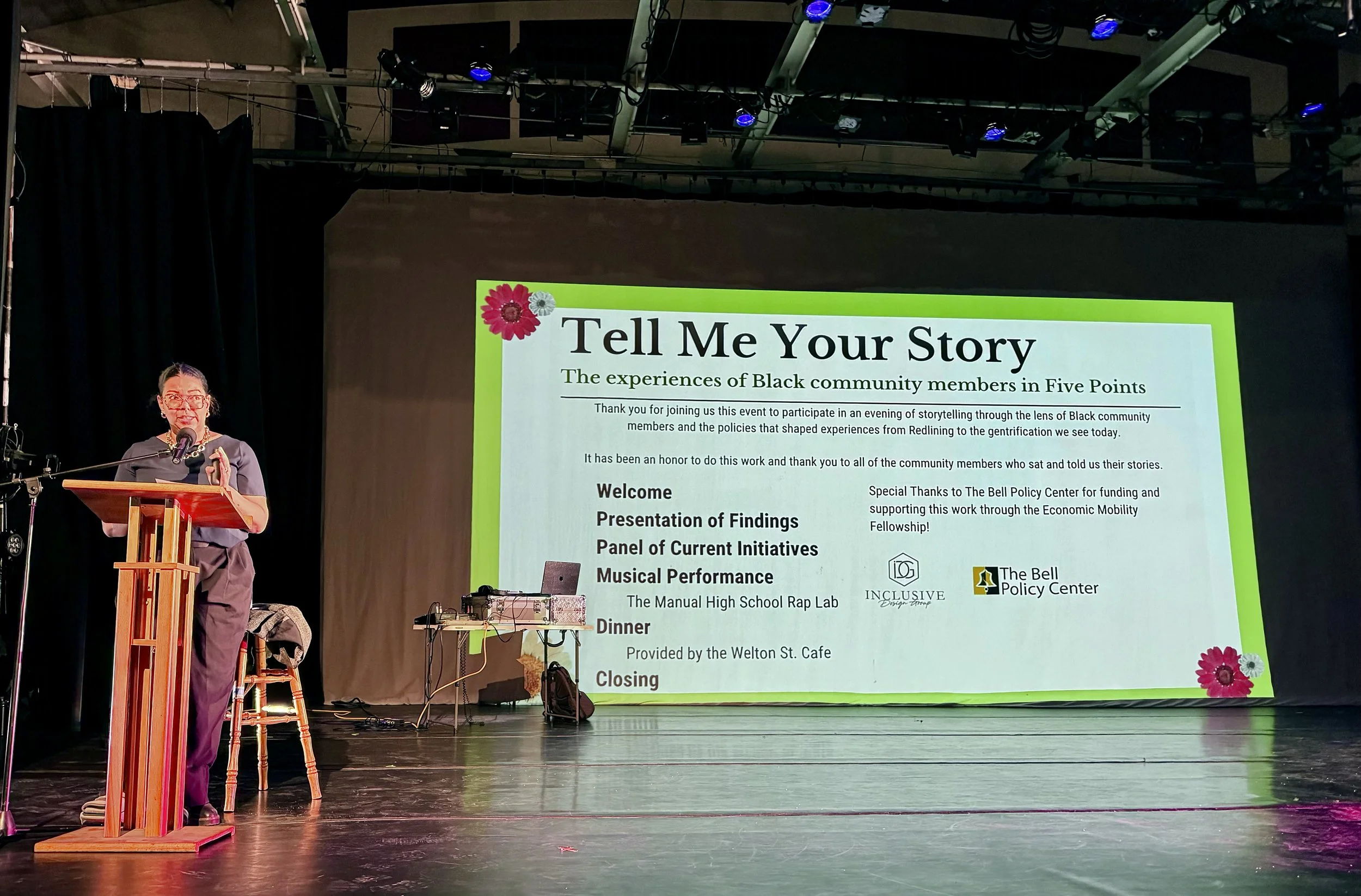March 12, 2025 - Kelly Mitchell’s research on Denver’s Five Points neighborhood is published by the Bell Policy Center. The project highlights stories of residents and local businesses and correlates the policies that shaped the region. This work was accompanied by a presentation of findings, showcasing local artists and organizations, and concluded with an evening of storytelling and community-building with local leaders over a hosted dinner in a historically significant venue.